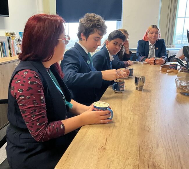 The students showed such kindness, maturity and compassion with the older members of the community and in return were awarded a special group Hot Chocolate with the Head where they chatted about the project and how it made them feel. Showing the collage to Mrs Baker, the students talked through the significance of the images and the people within it. One student, Peter, said of the gift: